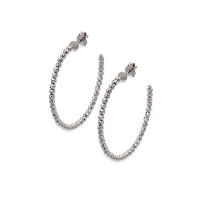 Show Off Your Style With These 35mm Desmos Diamond-Cut Hoop Earrings. Crafted From High-Shine Sterling Silver With Rhodium Plating,These Eye-Catching Earrings Feature A Sparkling Diamond-Cut Finish. Add A Touch Of Glamour To Your Look! Made In Italy. Available In Other Metal Options.