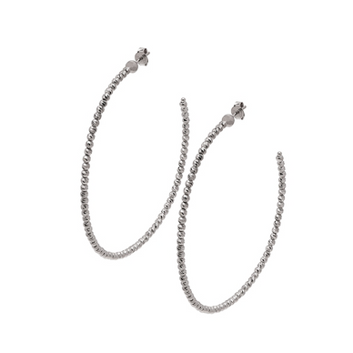 Show Off Your Style With These Desmos 55mm Diamond-Cut Hoop Earrings. Crafted From High-Shine Sterling Silver With Rhodium Plating Overlay. These Eye-Catching Earrings Feature A Sparkling Diamond-Cut Finish. Add A Touch Of Glamour To Your Look! Made In Italy. Style Number SLASH W 55