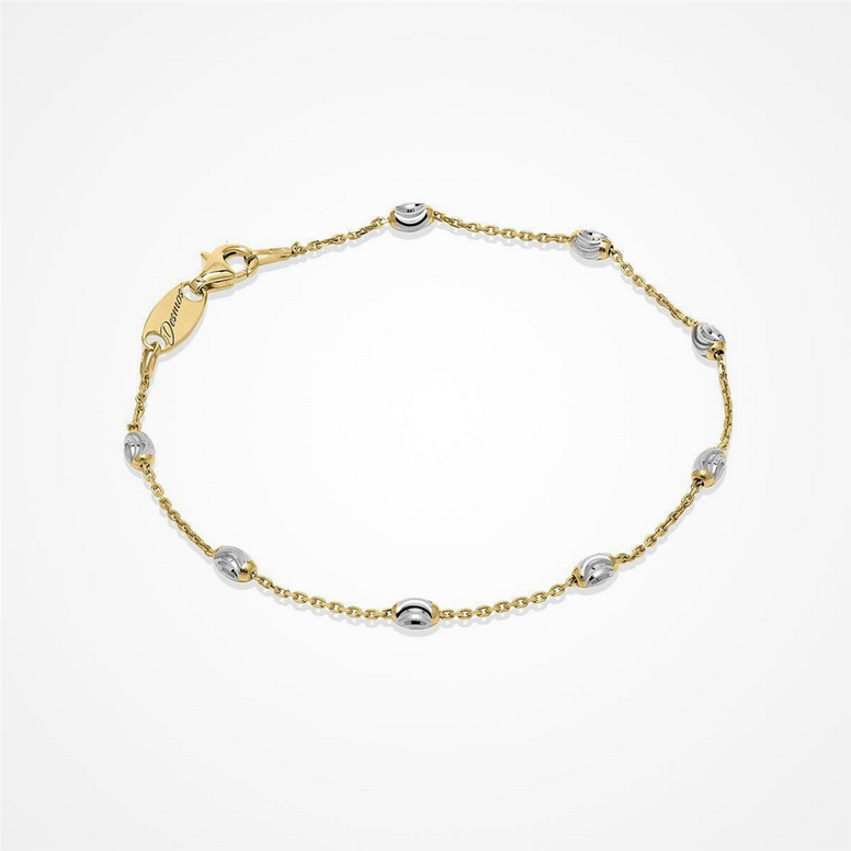 Elevate Your Everyday Style With The Desmos Station Moon Bracelet, A Perfect Balance Of Elegance And Versatility. Crafted In Italy, This Bracelet Features Polished Moon-Inspired Stations Alternating In Warm 18K Gold Plating And Sleek Rhodium Plating, Creating A Timeless Two-Tone Design That Complements Any Look. The Delicate Chain Is Finished With An Extender, Allowing An Adjustable Fit From 6.5 To 7.25 Inches For Comfort And Ease. Ideal For Layering Or Wearing Solo, This Piece Adds A Touch Of Modern Sophistication To Your Collection. Style Number STATION MOON 3+1 GW 6.5