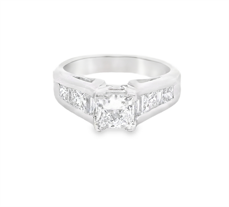This Exquisite Engagement Ring Features An 18K White Gold Setting Adorned With A Stunning Combination Of 0.71 Carats Of Princess-Cut And 0.59 Carats Of Baguette Diamonds. The Diamonds Are Graded F For Color And VVS 2 For Clarity, Ensuring Exceptional Brilliance And Sparkle. The Elegant Design Showcases The Unique Shapes Of The Stones, Creating A Timeless Piece That Symbolizes Love And Commitment. Perfect For The Discerning Individual Seeking A Sophisticated And Luxurious Engagement Ring. Style Number ENG1.30CT