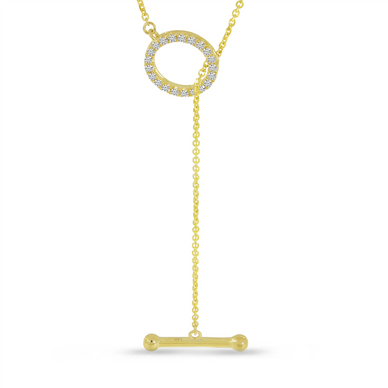 Brevani Ladies14k Yellow Gold & 0.21 CT Diamond Toggle Lariat Fashion Necklace 18"