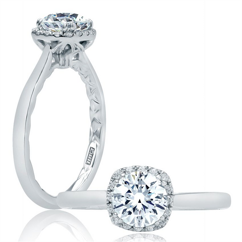 A.JAFFE Scalloped Halo Diamond Engagement Ring with Quilted Interior