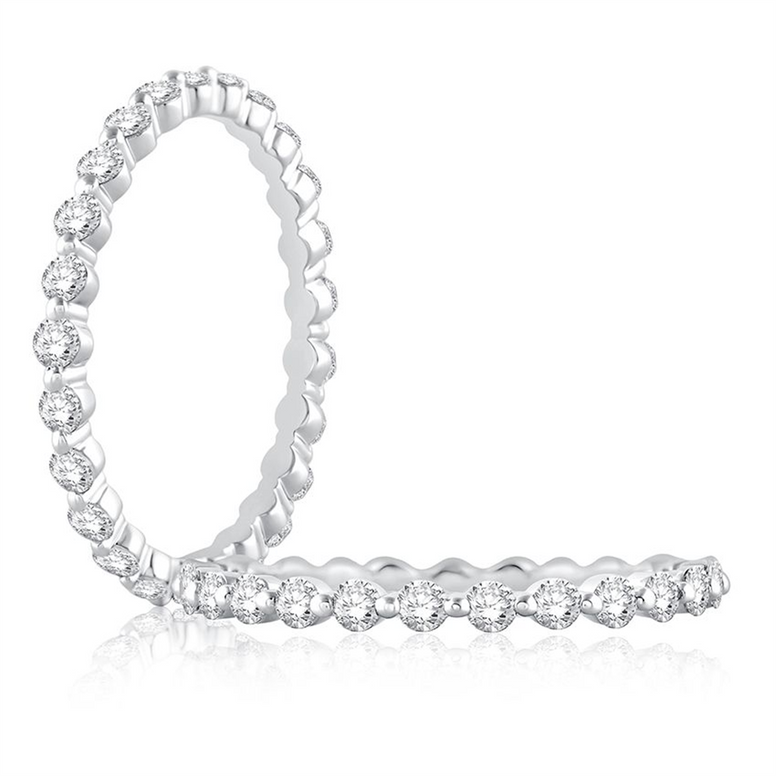 From The A.Jaffe Classics™ Collection Comes This Sparkling 18K White Gold Bubble Diamond Wedding Band Features Single Shared Prong Diamonds That Run All The Way Through The Band. Perfect For The Modern Who Prefer The Delicate Look.