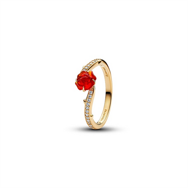 Add An Enchanting Touch To Your Look With Our Disney's Beauty And The Beast Ring. Crafted In 14K Gold Plating, It Features A Murano Glass Rose With Sparkling Stones And Thorn Details Along The Band.