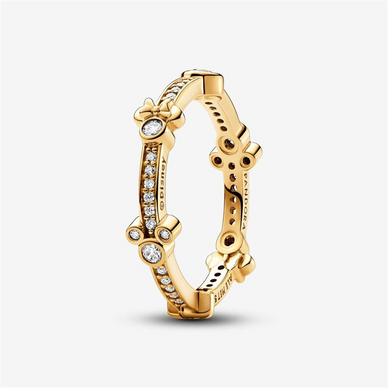 From Pandora, Take Your Fandom To The Next Level With The Disney Mickey Mouse & Minnie Mouse Sparkling Eternity Ring. Elegant And Delicate, This 14K Gold-Plated Ring Features A Pavé Band Punctuated By Bezel-Set Stones Arranged In Different Shapes. One Heart-Shaped Stone And One Star-Shaped Stone Are Set At An Equal Distance Around The Band; In Between Them Are Two Sets Of Round Stones In A Mickey Mouse Head Shape And A Minnie Mouse Head Shape. A Perfect Sparkling Surprise For The Disney Lover In Your Life. Style Number 162957C01-52