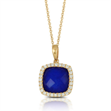 Royal Lapis and Cushion Cut Diamond Pendant Necklace