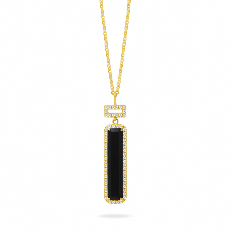 Striking And Sophisticated, This 18K Yellow Gold Drop Pendant Necklace Showcases A Bold 2.63 Ct Black Onyx Gemstone Framed By A Halo Of 66 Round Brilliant-Cut Diamonds Totaling 0.15 Ctw. The Elongated Silhouette Creates A Sleek, Modern Statement, While The Contrast Of Deep Onyx Against Radiant Gold And Sparkling Diamonds Adds Timeless Allure. Suspended From An 18" Chain, This Pendant Is The Perfect Blend Of Edge And Elegance — Designed To Turn Heads With Every Wear. Style Number N10135BO