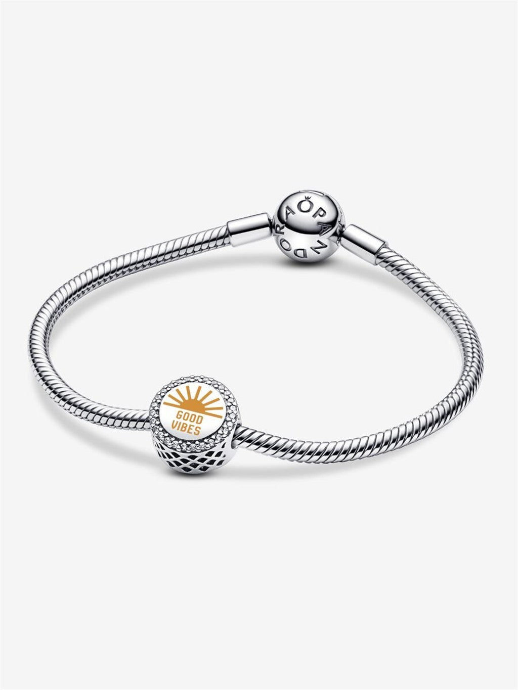 Catch The Rays Of Positivity With The Engravable Good Vibes Charm. This Circle-Shaped Charm Is Framed By A Dazzling Row Of Cubic Zirconia, Adding A Sparkle That Matches Your Energy. In The Center, A Radiant Yellow Sunshine Design Brings A Burst Of Warmth, With “Good Vibes” Boldly Inscribed To Spread Nothing But Positivity. The Charm’S Playful Design Is Perfect For Any Day, And The Back Is Ready For Your Own Personal Engraving. A Sweet Reminder To Keep The Good Vibes Flowing Wherever You Go. Style Number ENG792016CZ_316
