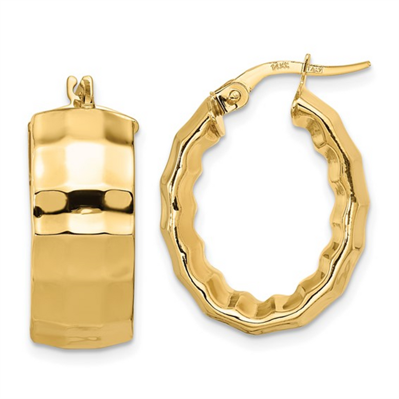 Ladies 14K Polished Yellow Gold Textured Oval Hoop Earrings