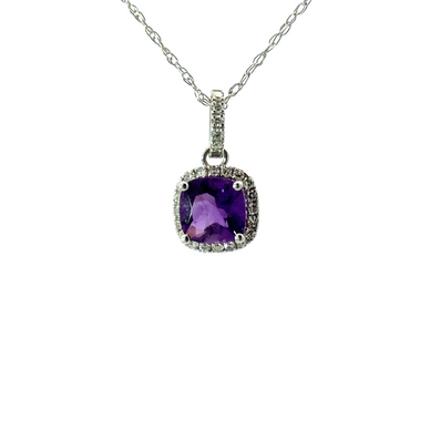 Ladies 14K White Gold Amethyst And Diamond Necklace