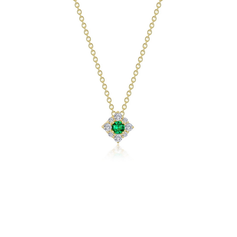 Dainty And Charming. This Adorable Adjustable Halo Necklace Features A Simulated Emerald Surrounded By Lafonn's Signature Lassaire Simulated Diamonds In Sterling Silver Using Lafonn's Exclusive Tr Gold, A New And Improved Plating Process That Preserves The Rich Color Of Gold And Enhances The Wearability Of Our Gold-Plated Styles.