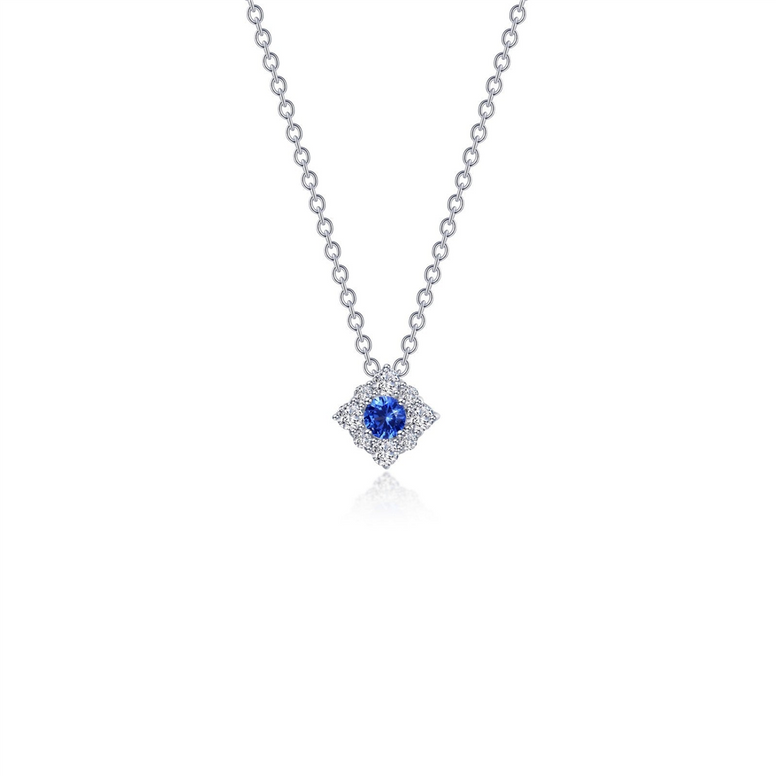 Dainty And Charming. This Adorable Adjustable Halo Necklace Features A Lab-Grown Sapphire Surrounded By Lafonn's Signature Lassaire Simulated Diamonds. The Earrings Are In Sterling Silver Bonded With Platinum.