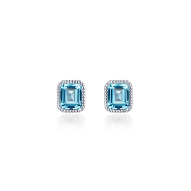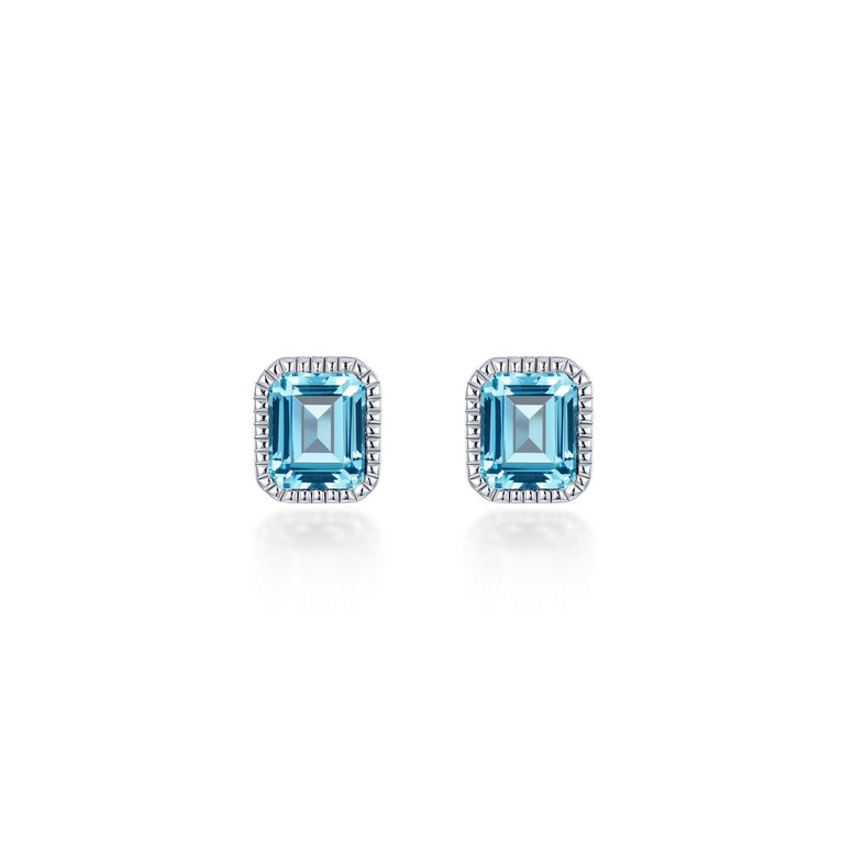 March - Aquamarine. Adorn Yourself With Lafonn's Birthstone Jewelry. These Gorgeous Stud Earrings Feature Emerald-Cut Simulated Aquamarines In Sterling Silver Bonded With Platinum. A Rope Style Border Gives These Splendid Stud Earrings A Classy Touch.