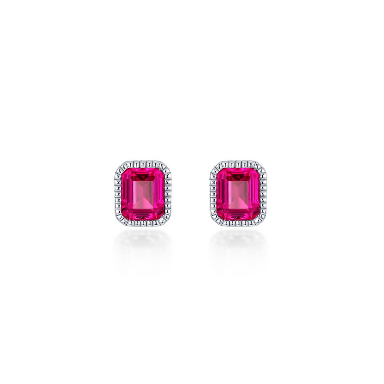 July - Ruby. Adorn Yourself With Lafonn's Birthstone Jewelry. These Gorgeous Stud Earrings Feature Emerald-Cut Lab-Grown Rubies In Sterling Silver Bonded With Platinum. A Rope Style Border Gives These Splendid Stud Earrings A Classy Touch. Lab-Grown Sapphires Have The Exact Same Chemical, Mineral, And Optical Properties As Natural Sapphires Which Vary In Color, Texture And Pattern. We Make Every Effort To Keep Our Lab-Grown Sapphire Stone Colors Consistent. However, All Lab-Grown Sapphires May Not Be Exactly As Shown On The Website. Stones May Appear Lighter, Darker Or Have Natural Variations. Style Number BE008RBP00