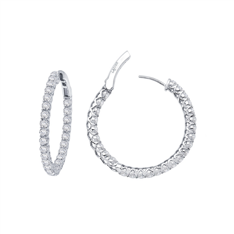 Fun And Elegant. These Inside Out Hoop Earrings Are Set With 2.00 CTW Of Lafonn's Signature Lassaire Simulated Diamonds In Sterling Silver Bonded With Platinum. 20mm Diameter