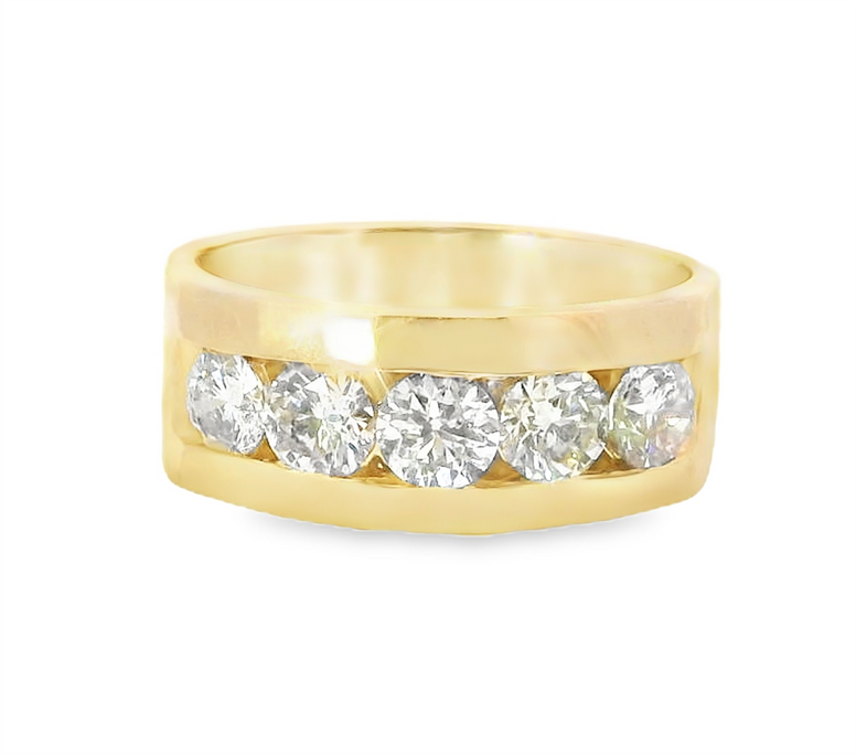 This Dazzling Men's Wedding Band Features A Stunning Design Crafted From 14K Yellow Gold, Showcasing Five Brilliant Diamonds Totaling 2.01 Carats. The Elegant Arrangement Of The Stones Symbolizes Enduring Love And Commitment, Making It A Perfect Choice For The Modern Groom. With Its Luxurious Finish And Timeless Appeal, This Wedding Band Is Not Only A Symbol Of Marriage But Also A Statement Piece That Complements Any Style. Ideal For Daily Wear, It Combines Durability With Sophistication, Ensuring It Remains A Cherished Accessory For Years To Come. Style Number GDD2599-200-310