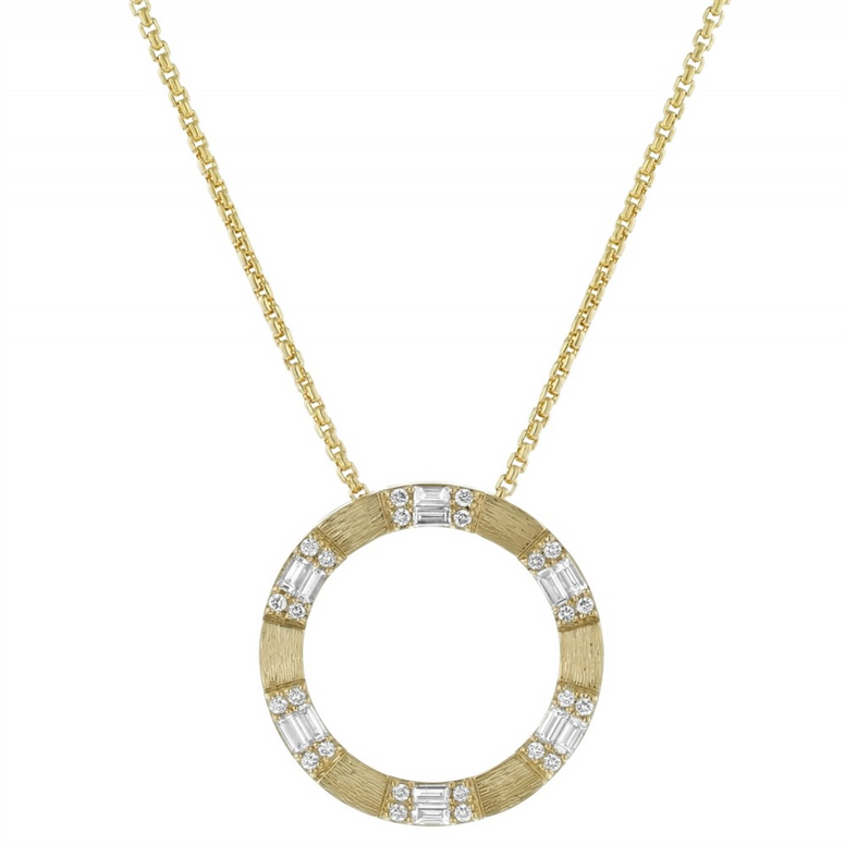 Oro Alexander 14K Gold 1 CTW Baguette And Round Cut Diamonds Large Circle Shape Necklace