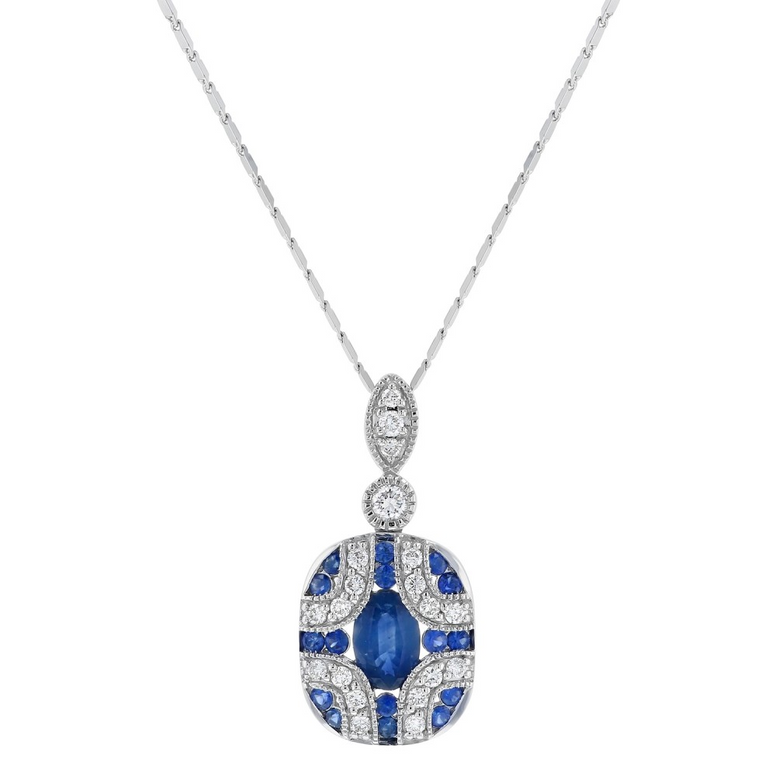 Oro Alexander 14K White Gold 1 CTW Diamond And Sapphire Art Deco Necklace