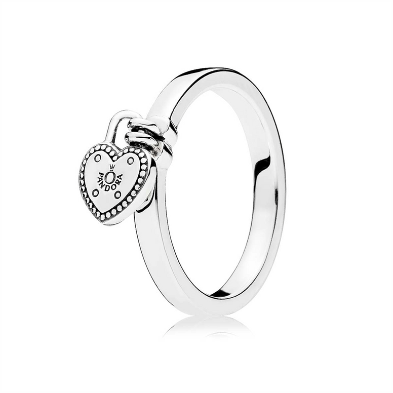 Keep Your Closest Desires Under Lock And Key With This Pretty Heart-Shaped Padlock Ring. Crafted In Polished Sterling Silver, This Enchanting Ring Holds A Precious Padlock Embossed With The Pandora Crown Logo. The Perfect Keepsake, This Playful Style Can Be Worn On Its Own Or Layered With Other Pandora Stackable Rings.
