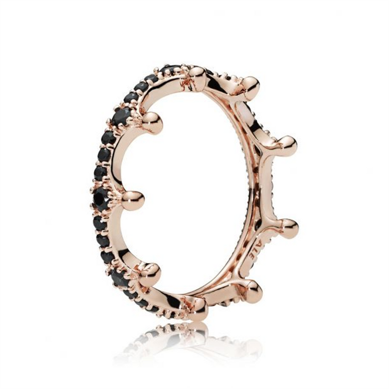 Channel A Regal Feel And Crown Your Ring Look With This Enchanting Ring In A 14K Rose Gold-Plated Unique Metal Blend, Embellished With Dramatic Black Stones For A Modern Take On A Classic Style. Style Number 187087NCK-52