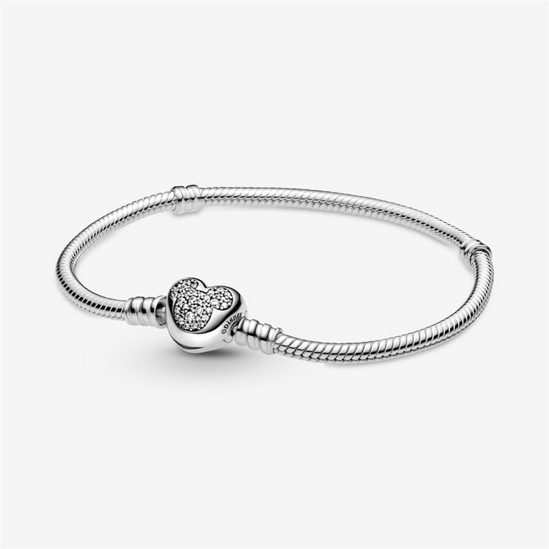 Believe In Magic With The Disney Pandora Moments Mickey Mouse Heart Clasp Snake Chain Bracelet. Hand-Finished In Sterling Silver, This Style Includes A Heart-Shaped Clasp With Mickey Mouse’S Silhouette On The Front Decorated With Clear Stones. The Polished Back Of The Clasp Includes An Engraved Outline Of The Character. Prove That You’Re A True Fan By Teaming This Sparkling Piece With Other Standout Styles From Disney X Pandora. This Bracelet Measures 7.1 Inches In Length.