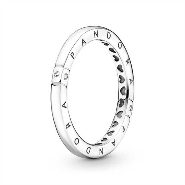 From Pandora, Celebrate Sleek Simplicity With The Logo & Hearts Ring. Hand-Finished In Sterling Silver, This Ring Features A Squared Profile With A Polished Outer Edge, Pandora Logo Along Two Sides And Cut-Out Hearts On The Inside. Grooved Lines In Two Positions Create A Squared Framing Studded With Clear Cubic Zirconia Stones. Whether You're Looking For The Perfect Stackable Ring Or A Sleek Style With Subtle Sparkle, This Ring Is A Versatile Choice For Any Occasion. Style Number 199482C01-54