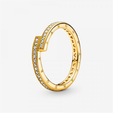 The Classic Eternity Ring, Reimagined With A Twist. This Sparkling Overlapping Ring Makes The Ultimate Statement Of Effortless Style. Crafted From A 14K Gold-Plated Unique Metal Blend, The Band Is Decorated With Cut-Out Hearts And Set With Brilliant-Cut Cubic Zirconia Pave. It Has Been Deconstructed So That Its Edges Overlap Beautifully, Revealing Micro Pandora Monograms At Each End Of The Band. The Result Is A Distinctive New Shape That Looks Sophisticated Worn Alone, Or Stacks Perfectly On Top Of Itself By Twisting Multiple Rings To Connect Together.