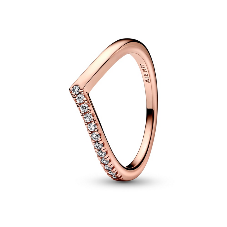 Make All Your Wishes Come True With This Delicate Pandora Sparkling Wishbone Ring, Half-Lined With 12 Claw-Set Round Brilliant-Cut Cubic Zirconia Stones On A 14K Rose Gold-Plated Band. Simple Yet Elegant, This Wishbone-Shaped Ring Can Be Worn On Its Own As A Shimmering Statement, Or Paired With Other Pandora Stackable Rings To Create A Unique, Highly Individual Look. Style Number: 182394C01-54
