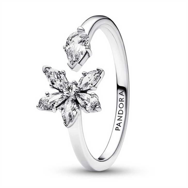 Pandora Timeless Sparkling Herbarium Cluster Open Ring Size 8.5