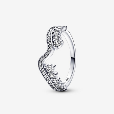 Pandora Timeless Sparkling Asymmetric Wave Ring Size 7