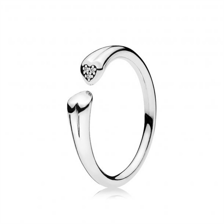 This Gorgeous Double Heart Open Face Pandora Ring Is Made Of Sterling Silver And Detailed With Sparkling CZ's.