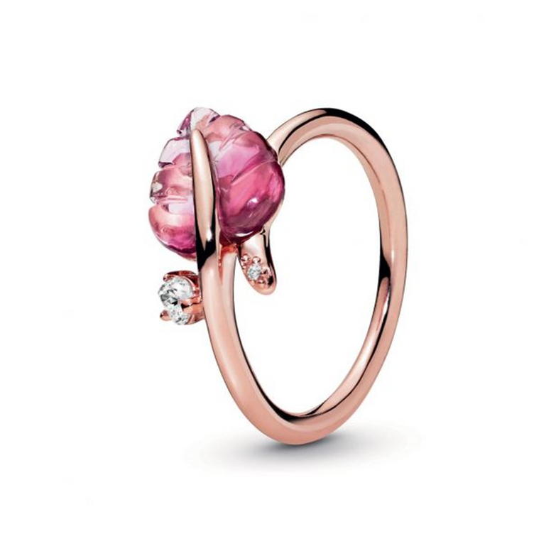 From Pandora, Stand Out From The Crowd With The Warm Tones And Pink Accents Of This Pink Murano Glass Leaf Ring In 14K Rose Gold-Plated Unique Metal Blend. The Eye-Catching Pink Leaf Is Carved From A Unique Piece Of Murano Glass And The Center Of The Leaf Is A Continuation Of The Ring Band, Giving It A Natural Feel. A Cut-Out Leaf Pattern In 14K Rose Gold-Plated Sterling Silver Placed Underneath Draws Extra Light Through The Glass And Two Extra Clear Cubic Zirconia Add A Sprinkle Of Sparkle. Style Number 188319PMU-54