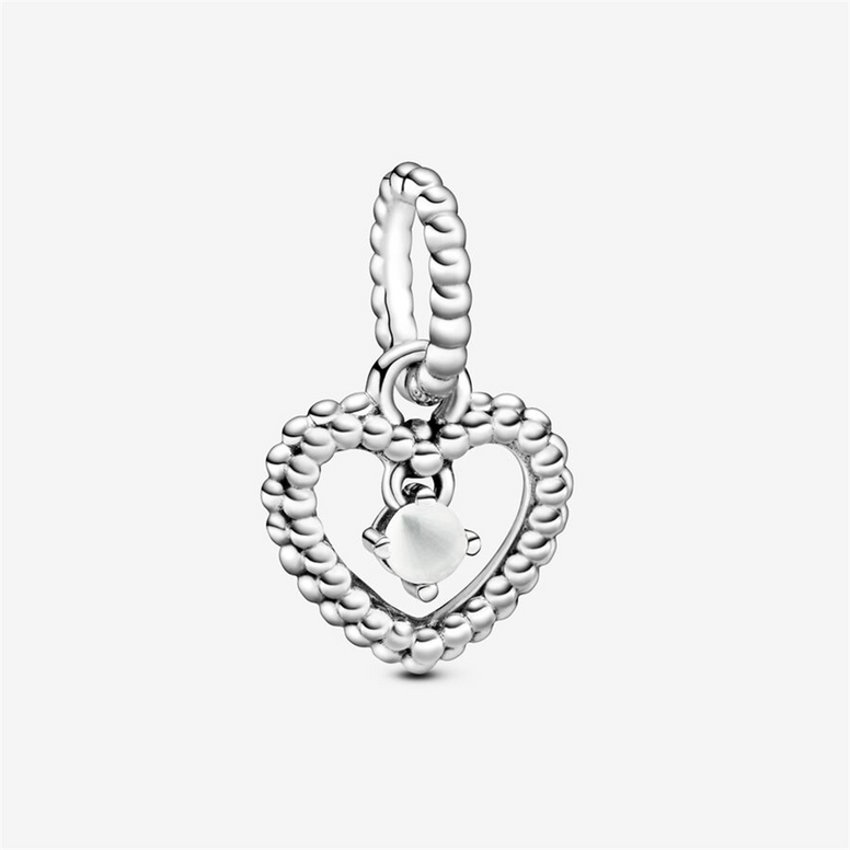 Pandora Moments April Milky White Beaded Heart Dangle Charm