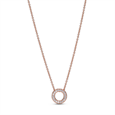Pandora Signature Rose Logo Pavé Circle Collier Necklace 45 cm