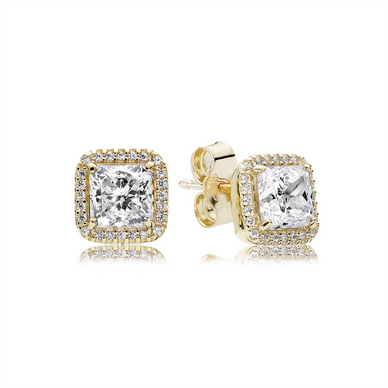 Pandora Timeless Silver And 14K Gold Square Sparkle Halo Stud Earrings