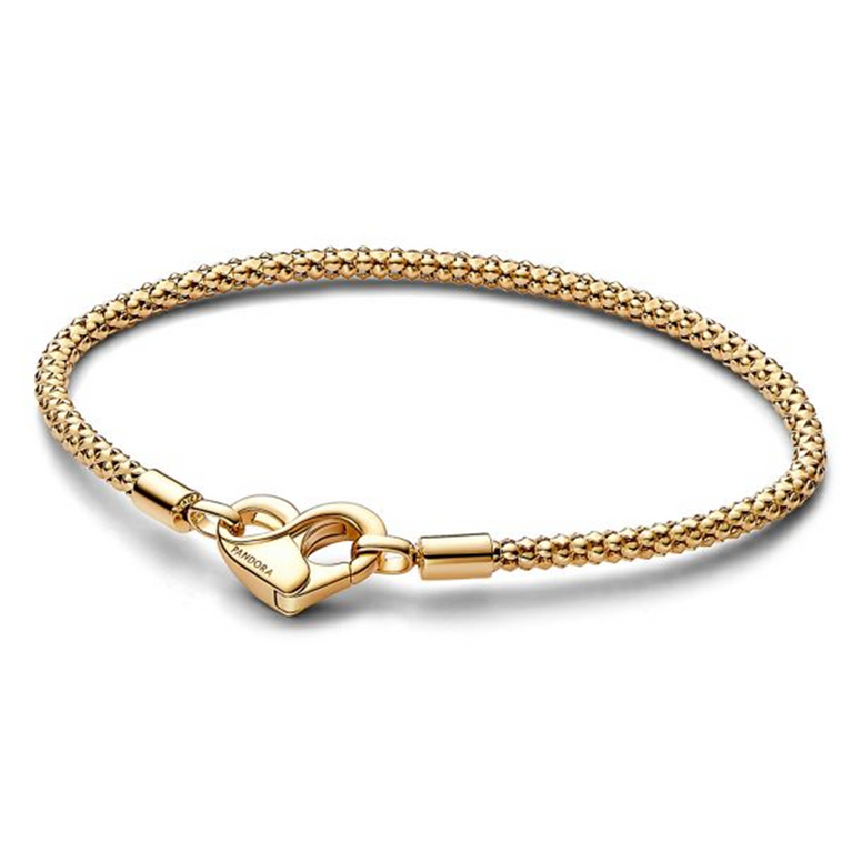 Update Your Collection With Our New Pandora Moments Studded Chain Bracelet In A 14K Gold-Plated Unique Metal Blend. This Hand-Finished Bracelet Features A Flexible, Textured Chain And An Infinity-Detailed Openable Heart-Shaped Clasp With An Interior Infinity Symbol. Please Note This Chain Bracelet Does Not Have Threaders (Raised Charm Dividers). A Maximum Of 14-18 Charms Or Dangle Charms Can Be Styled On The Bracelet. The Clasp Cannot Be Styled With Charms. We Recommend Adding Charms With Silicone Grips Or Safety Chains To Secure Your Styling. This Bracelet Measures 6.3 Inches In Length.