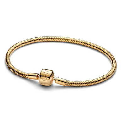 Style More Of The Charms You Love With Pandora's Shake Chain Bracelet With A Barrel Clasp In 14K Gold Plating. A Long-Standing Part Of Pandora Heritage, The Barrel Clasp Was One Of The First Ever Snake Chain Bracelet Designs. Here, It Gets A Modern Update, Reimagined With Sleeker Details. Celebrate Pandora’S History With This Iconic Piece And Let The Staple Live On As A Part Of Your Collection. Style Number 563390C00-16