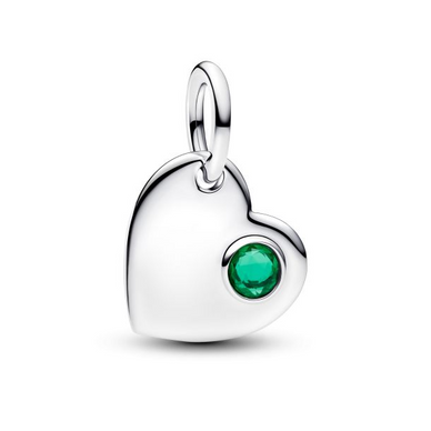 Pandora Moments May Engravable Heart Green Stone Dangle Charm