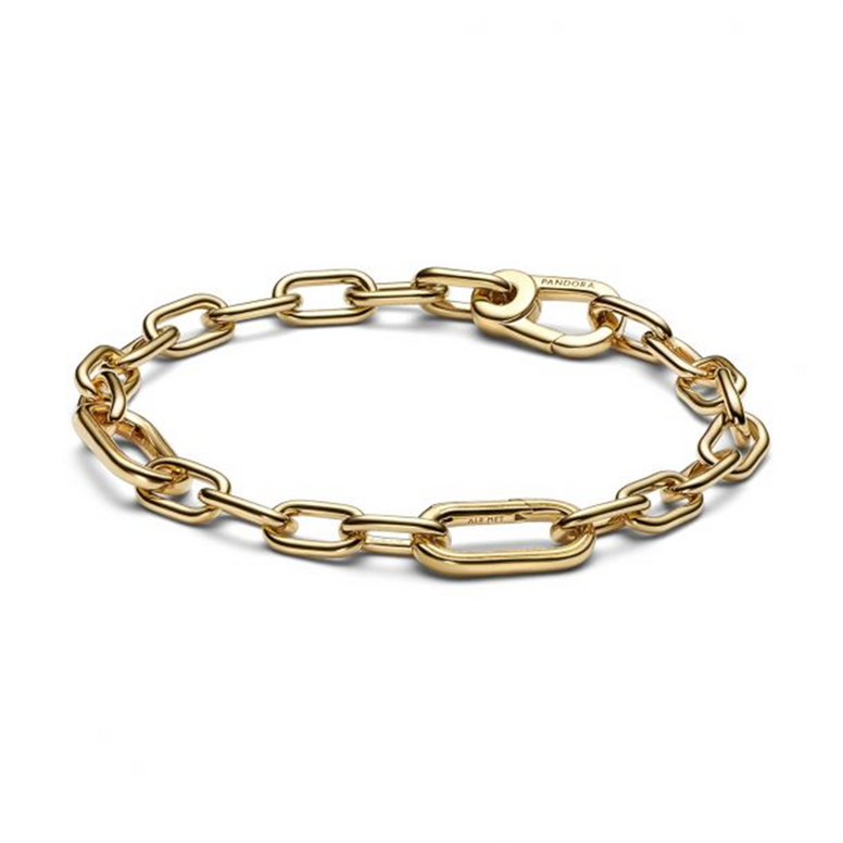 Link What You Love Like Never Before. This 14K Gold-Plated Pandora Me Link Chain Bracelet Holds Endless Styling Possibilities. The Design Features Two Openable Styling Connectors - Crafted With Grooved Surfaces To Set Them Apart - A Group Of Four Links Between Each Styling Connector And A Carabiner Clasp Closure. First, Customize Your Link Chain: Four Links Can Be Swapped Out For One Styling Double Link Or One Styling Link - Keep The Original Length Or Adjust It To Suit You. Once You’Ve Curated Your Link Chain, Style Up To Two Meaningful Medallions Or Up To Eight Mini Dangles On Each Openable Styling Connector To Show The World Who You Are. Note: Medallions With Openable Tops Can Be Styled On Closed Styling Links. Style Number 569662C00-3