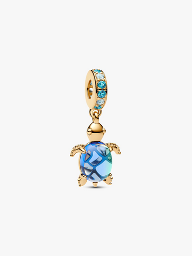 Pandora Moments 14K Gold Plated Sea Turtle Murano Glass Dangle Charm