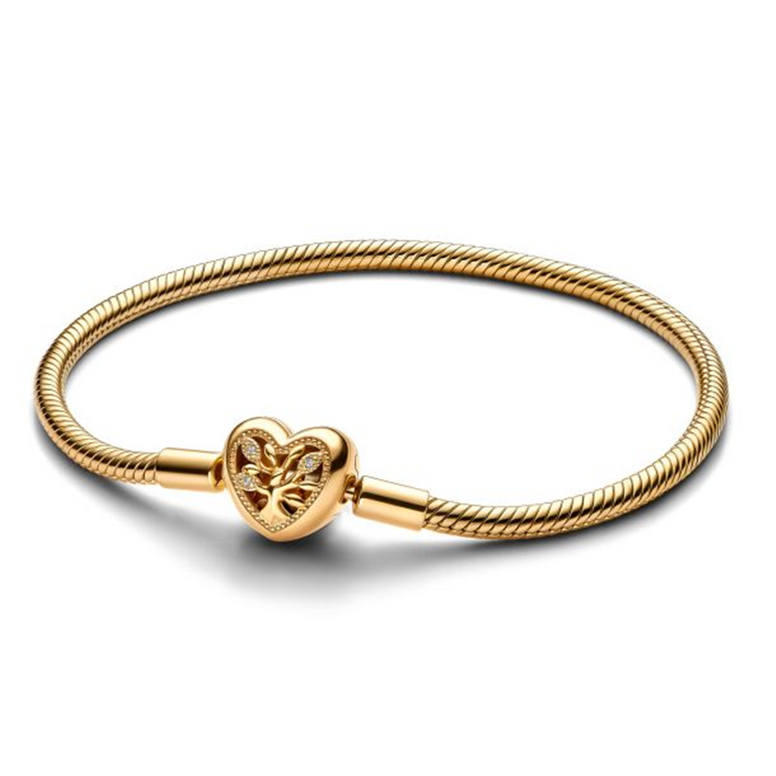 Pandora Moments Family Tree Heart Clasp Gold-Plated Snake Chain Bracelet Size 21
