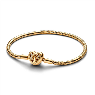 Pandora Moments Family Tree Heart Clasp Snake Chain Bracelet Size 19