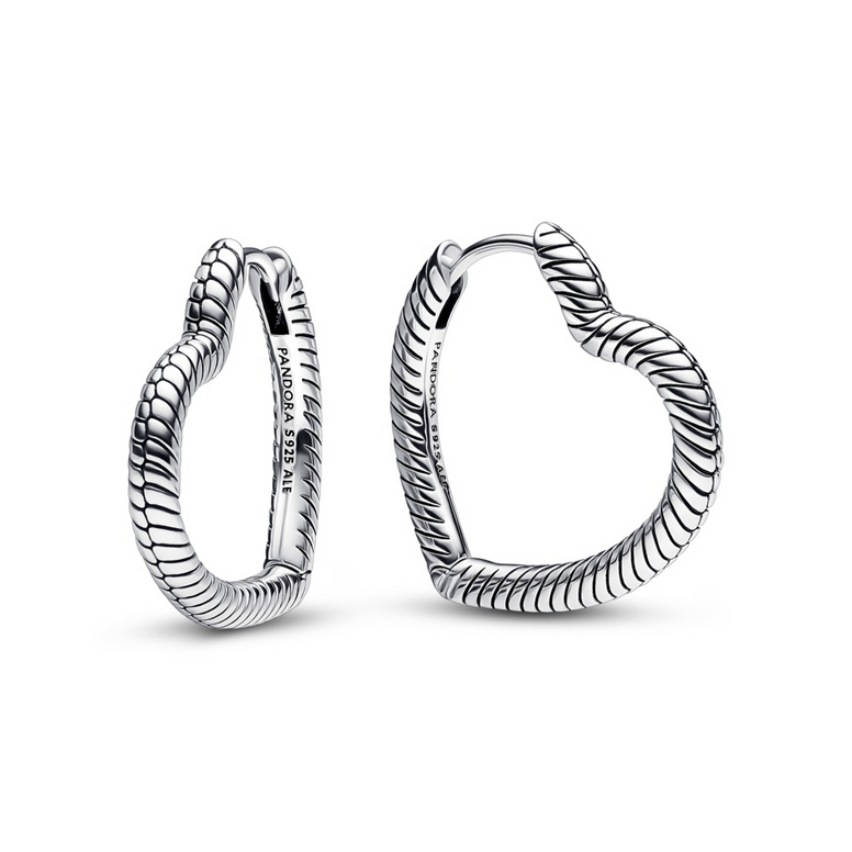 Earrings You’ll Fall In Love With. Crafted In Sterling Silver With Pandora’s Iconic Snake Chain Pattern, These Asymmetric Hoops Are A Reminder That True Love Is Never Uniform. Wear These Symbols Of Self-Love On Their Own, Or Style Up To Three Of Your Charms, Dangles And Pendants And Tell The World Your Story.