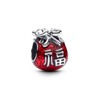 Carry Good Fortune Everywhere You Go With Our Lucky Bag Charm. This Sterling Silver Pouch Is Covered In Red Enamel And Features The Chinese Character Fu On Both Sides, Symbolising Happiness And Good Luck.