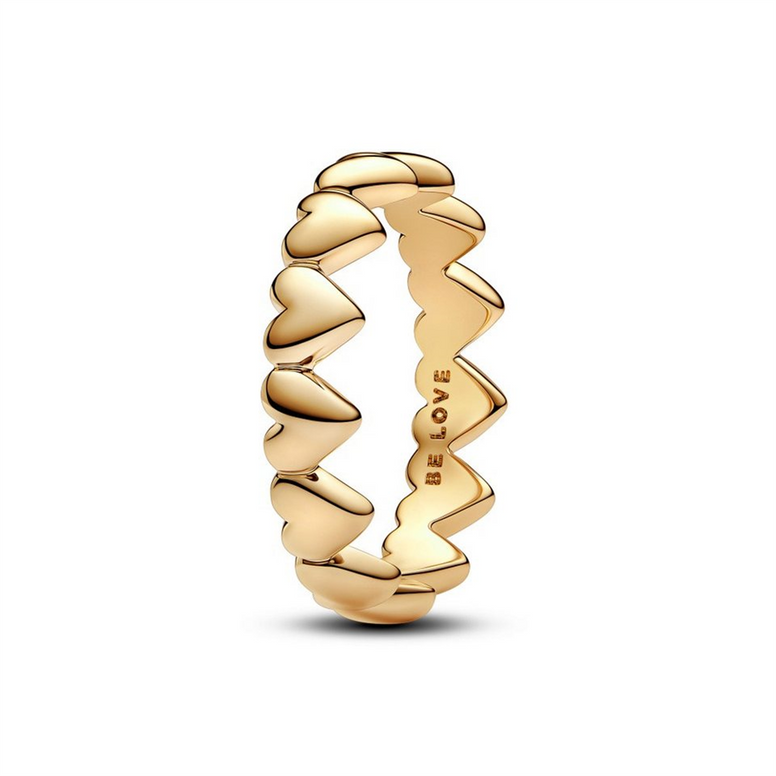Give A Gift From The Heart With This 14K Gold-Plated Ring. Expertly Crafted With A Row Of Hearts Making Up The Band, This Romantic Design Looks Equally Beautiful Worn On Its Own Or Layered With Contrasting Pandora Rings. Give It As A Gift For A Meaningful Way To Express Your Love, Or Treat Yourself To A Piece You'll Love Wearing Over And Over. Style Number 163427C00-48
