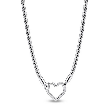 Pandora Moments Silver Heart Closure Snake Chain Necklace 45cm
