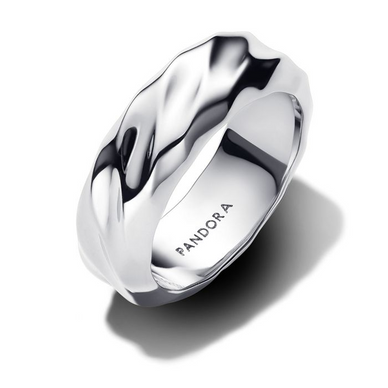 Pandora Rippled Wide Band Sterling Silver Ring Size 7