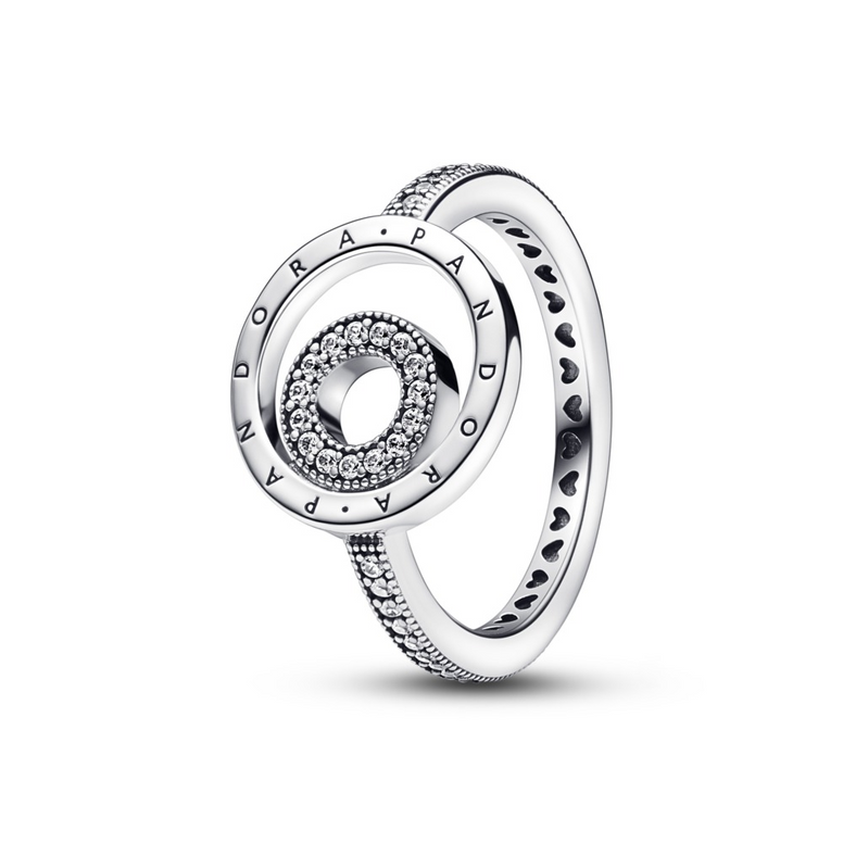 Crafted In Sterling Silver, The Pandora Signature Logo Circles Pavé Ring Combines Iconic Design Elements To Create A Sophisticated Jewelry Box Staple. The Off-Centered Placement Of The Inner Circle Adds A Dynamic Quality To The Design, With Rows Of Microbeading And Pave For Sparkle And Texture. Wear This Ring As A Statement Piece To Elevate Any Outfit. Style Number 192316C01-52
