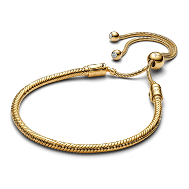 Our Pandora Moments Snake Chain Slider Bracelet Is A Sophisticated Spin On The Classic Friendship Bracelet. Crafted In 14K Gold Plating, It Has Two Moveable End Caps — Both Set With Shimmering Stones. An Innovative Sliding Clasp Makes It Easy To Adjust To Your Size. The Perfect Present For Friends And Loved Ones, It Can Be Styled By Lifting Either End Cap And Adding Your Favourite Charms. Style Number 563580C01-2