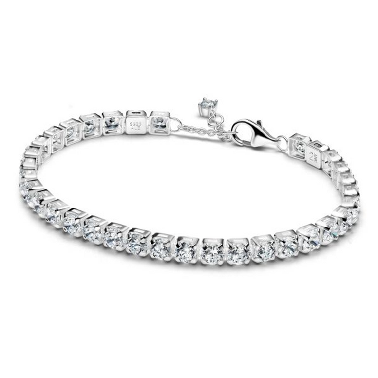 Pandora's Reimagined Classic Tennis Bracelet Is Crafted From Sterling Silver And Features A Sparkling Row Of 34 Prong-Set Round Brilliant-Cut Cubic Zirconia. Designed With Layering In Mind, This Is The Ultimate Piece To Add Scale And Depth To Your Stacks With Its Larger Stone Size. Wear Yours As A Sparkling Statement All Season And Beyond, Or Wrap It Up As A Glittering Surprise For The One You Love. Style Number 593539C01-16